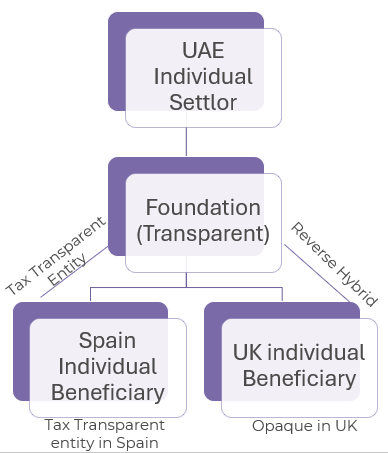a Reverse Hybrid Entity vis-à-vis the UK resident beneficiary (for whom the foundation is treated as an opaque vehicle).